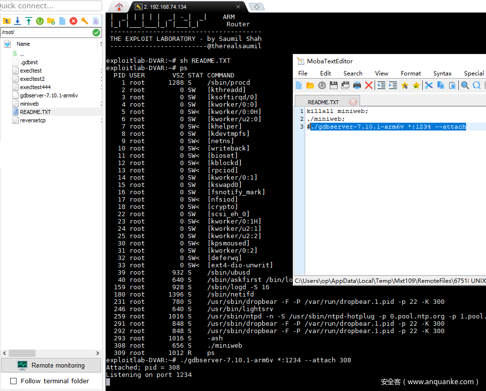 使用MobaXterm(可以很方便的上传下载文件) ssh登陆到设备,用户名是root,无需密码。