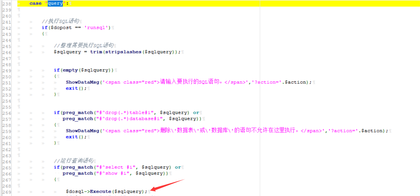这里只拦截了删除语句,以及去除反斜杠还有去空格,没有拦截其他的语句,那么我们再去Execute这个函数看看,这个函数在include/mysqli.class.php的166行被定义