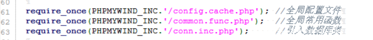 三个文件做什么的看开发贴心的注释就知道了,要是变量覆盖这个在包含common.func.php下面就可以飞起了。这三个文件可以先不看,一个是常用函数,一个是各种配置变量定义,还有一个就是连接数据库的文件。之后就是设置了一些路径之类的变量
