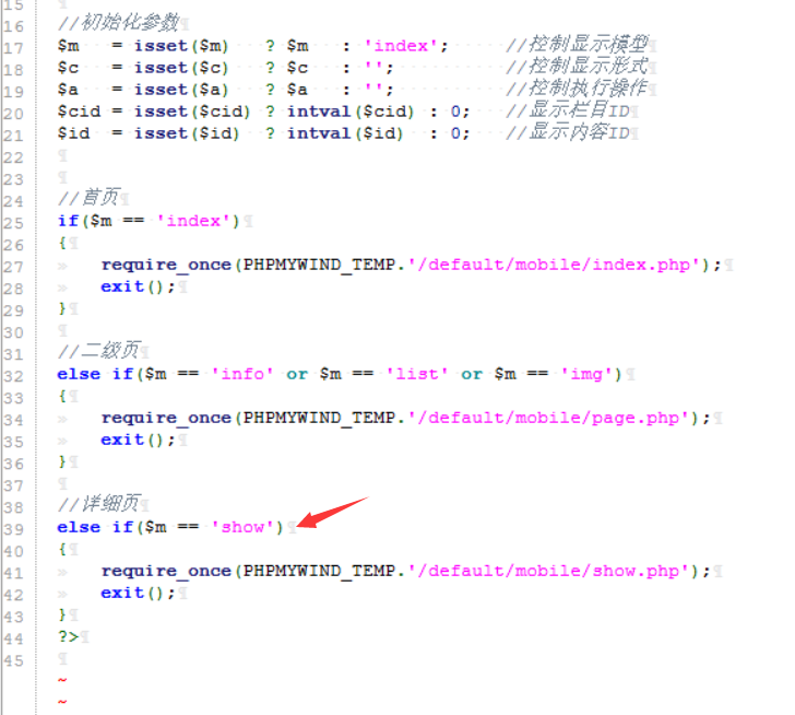 我们可以看到4g.php这个文件,4g.php的第41行只要我们传参m=show