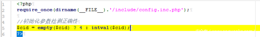 我们发现第55行有一个变量id,这个地方如果我们能够控制变量id,那么我们可能就可以对这个CMS进行SQL注入,并且这个变量id都没有被单双引号包裹,那么如果存在注入,我们都不需要去考虑魔术引号带来的烦恼。