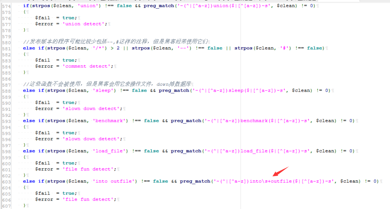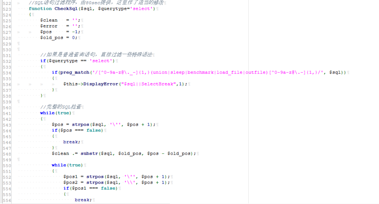 这里有一个安全性检测我们去看下,这个函数还是在这个文件被定义,在523行到结束,这里代码有点长,我就贴核心的一块吧。