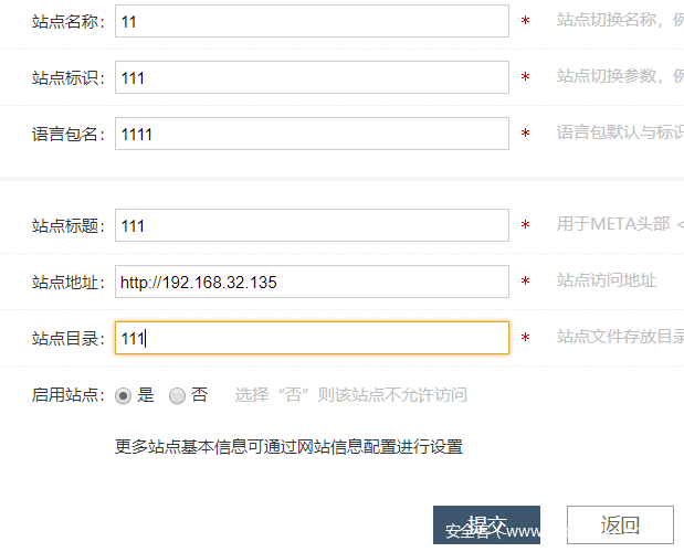 万事俱备了,我们改了数据库内容能让恶意语句拼接进去了。那么我们只要触发就行。具体操作也很简单,我们在站点配置管理随便加一个新站点。