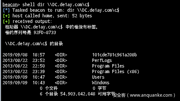 然后加载 de1ay.ticket 文件, 再次执行发现可以访问域控资源,已经得到域控的权限。