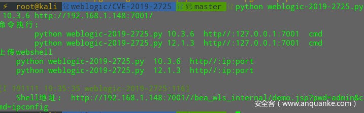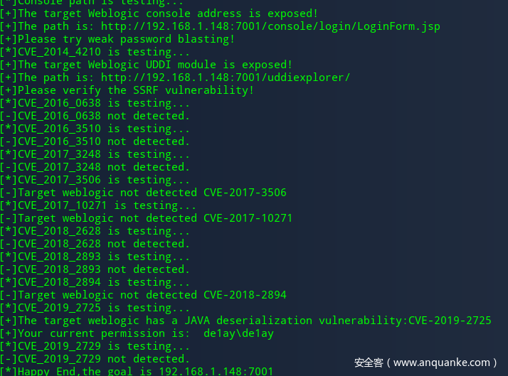 说起weblogic大家一定很熟悉了,漏洞遍地走,简单测试之,工具地址(https://github.com/rabbitmask/WeblogicScan.git)