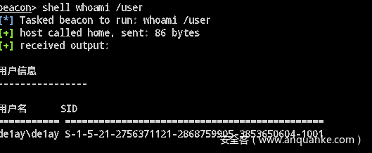 我们先查看该用户的SID(重新反弹了一个普通用户的shell)