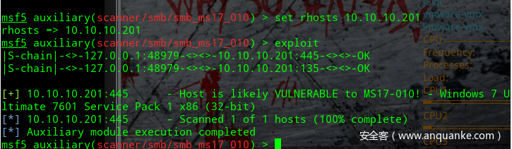 个人喜欢msf里面的一些模块,所以一般会使用代理功能进行代理msf,然后,我们的下一个目标就是10.10.10.201这一台机器,内网通用手法之一就是17-010的利用,因为真是环境中17-010也是在内网中十分常见,现在可能是0708比较多…