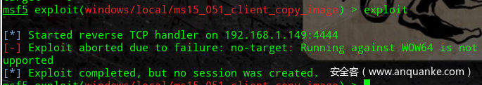 个人感觉msf里面对于2008提权比较好用的就是ms15_051 、ms15_078这两个了,我这里先使用ms15_051 试试