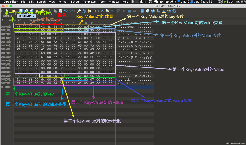 为了保证能触发字节吞并,我们必须保留bundle.putParcelable("00",new Message());,接下来我们可以置入一个Int型数组,因为Int型数组的每个元素都是4字节长,有助于我们进行精准控制,那么,被吞并的将是Int型数组的前四个字节,我们控制完之后的结果就应该是:
