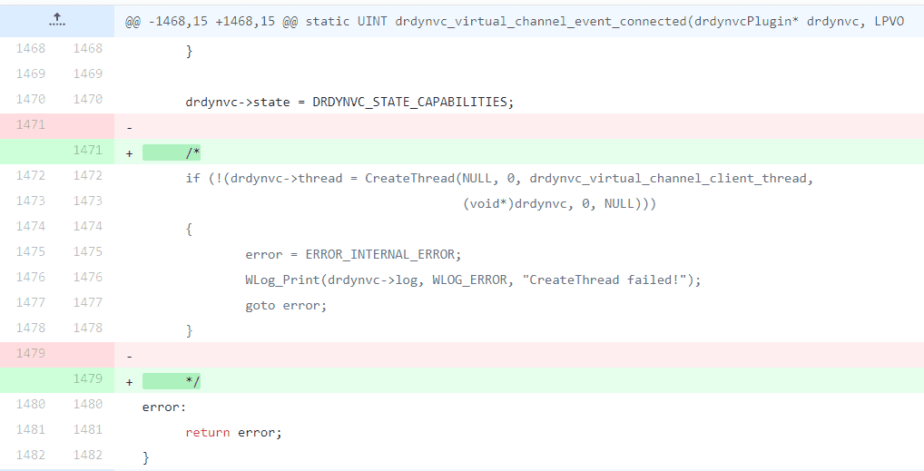 出于这个原因,我们的建议是:只要有可能,您就应该将线程并发限制在最低限度。下面,我们展示了为此目的在FreeRDP代码中所做的一些修改: