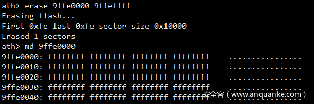 读取内存:Flash 在内存的地址使用命令 bdinfo 查看,。