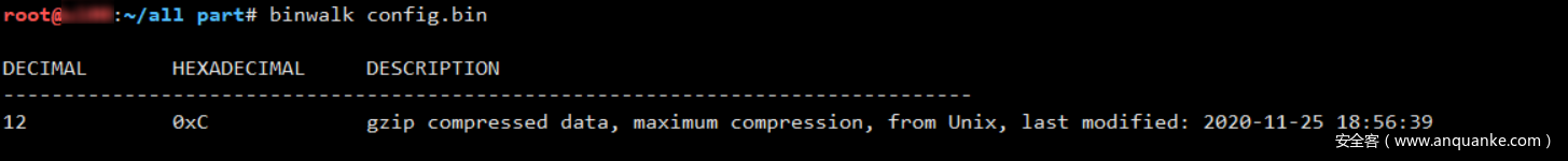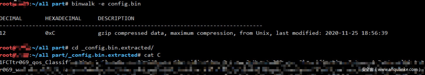 binwalk 分析出 config 中的内容是经过 gzip压缩的。