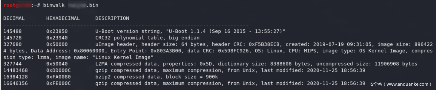 root@kali#dd if=flash.bin of=config.bin bs=1 count=65535 skip=16646144