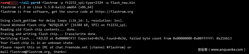 以上操作完成了固件的重打包,然后就可以使用 Flashrom 写入新固件。