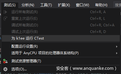 首先定义一个macro用来方便添加测试项,然后add一个可执行程序,并且链接我们的库k1ee::k1ee(别名,用原名也可以),随后add_test,这样VS里的测试功能就可以用了。后面如果打开了编译为动态链接库还需要复制到测试目录。