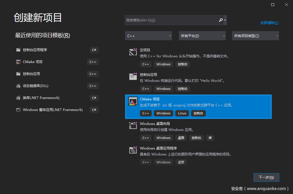或许有人没用过CMake,放心我以前也没用过,这玩意儿学习曲线比较陡峭。但不用担心,你的vcpkg库用CMake做也是可以在VS工程里使用的,而且这个教程里学的CMake知识只是皮毛,但也完全够用,当作一个起点就行。而且CMake工程比VS工程适配性更好,还能直接编译到WSL里运行,一些要求环境的CTF题也能用,岂不美哉?