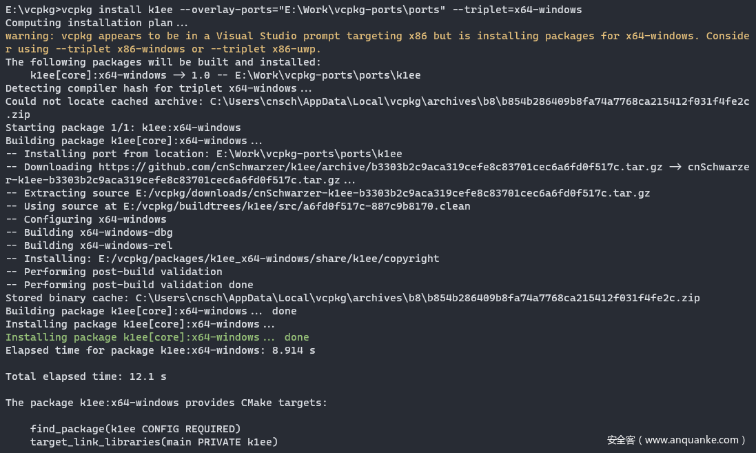 安装k1ee库本身并导出Target配置文件,生成Config文件