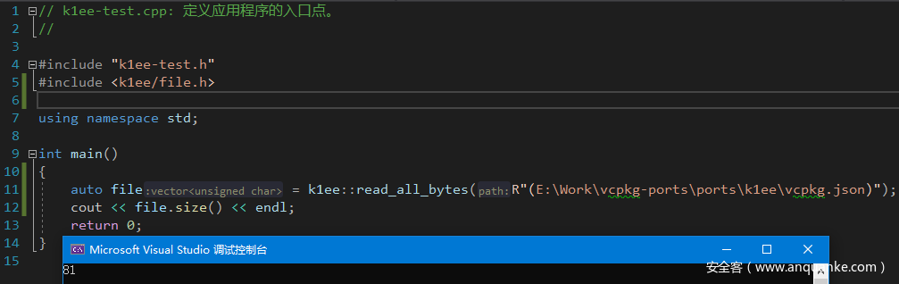 把头文件都放在这里,为了在vcpkg用的时候以#include<k1ee/xxx.h>的方式引用,因此还需要放在一个k1ee文件夹里。在k1ee/file.h里写简单的函数声明