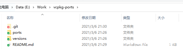 我们完成了库源码,还需要仿照vcpkg为这个库建立一个ports来帮助vcpkg下载和安装上面这个库,因此本地创建一个文件夹,姑且叫做vcpkg-ports,里面需要有ports文件夹提供库安装信息
