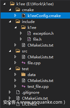 不知道为什么需要,但如果想让vcpkg正确配置引用工程的CMake必须得添加,新建k1eeConfig.cmake,并编辑内容如下