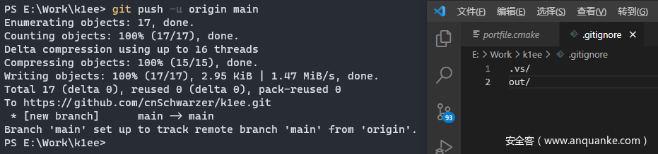在k1ee文件夹git init,并且创建.gitignore排除.vs与out,随后上传。