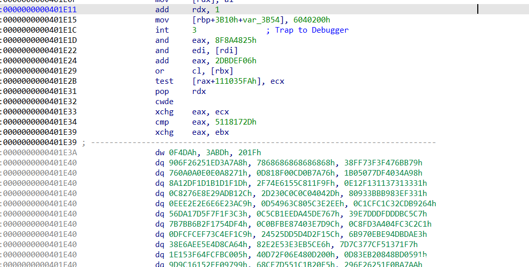 - 找到了用于验证的函数,里面加了花指令,但这里一定不要patch,因为smc就是解密的这段代码,这里patch了解密后的代码就肯定有问题了