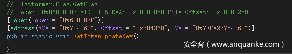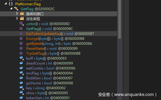 这就是CE直接修改数目无法得到flag的原因,需要每次吃到星星后EatTokenUpdateKey方法,才能得到真正的key来解密flag