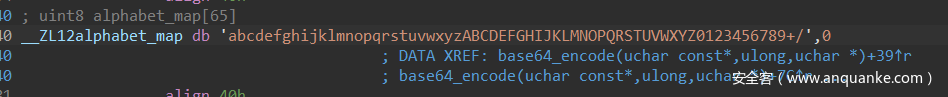 直接由函数名知道是base64编码,进入base64_encode函数并查看alphabet_map,可以发现base64换表了,用python写个脚本就得到flag了