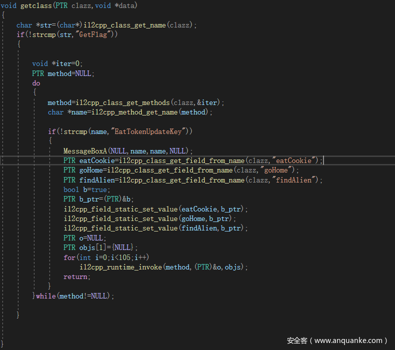 - il2cpp_class_get_name 得到当前处理的类名称,看看是否是GetFlag类