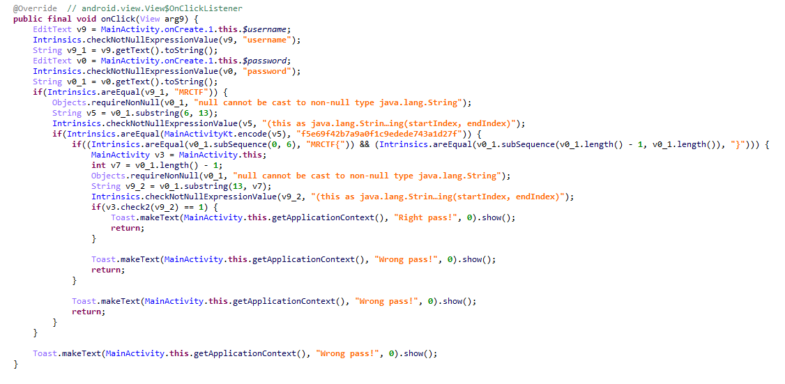 这里就是点击的监听,首先登录用户名已经限定为MRCTF