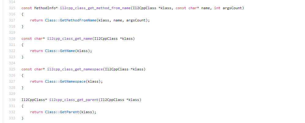 我们可以发现IL2CPP的源码中有许多的API函数,都是以il2cpp_XXXX_XXXX_XXX来命名的