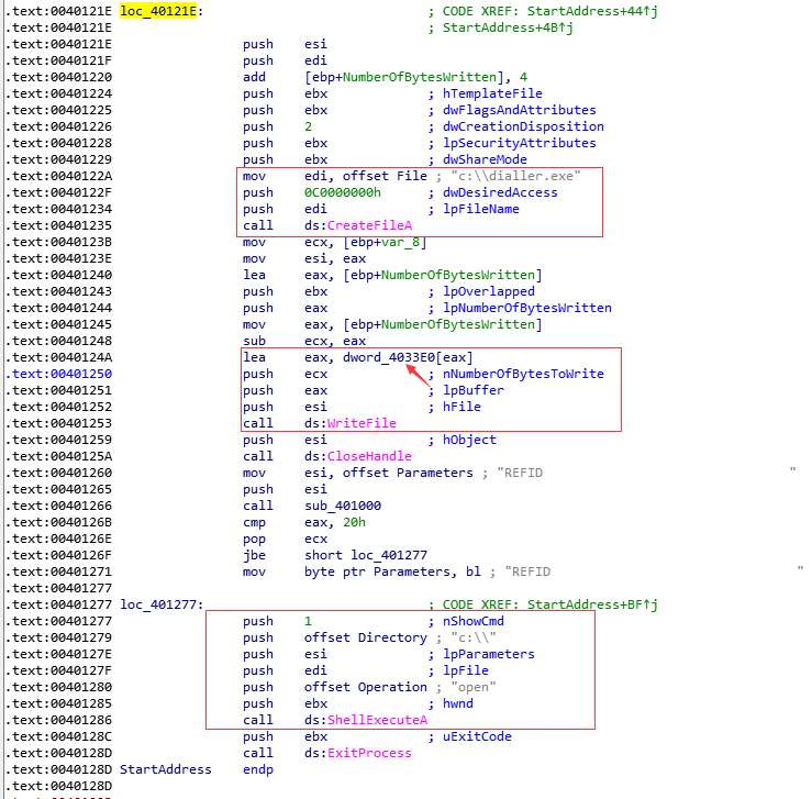 在这里,程序首先会创建C:dialler.exe