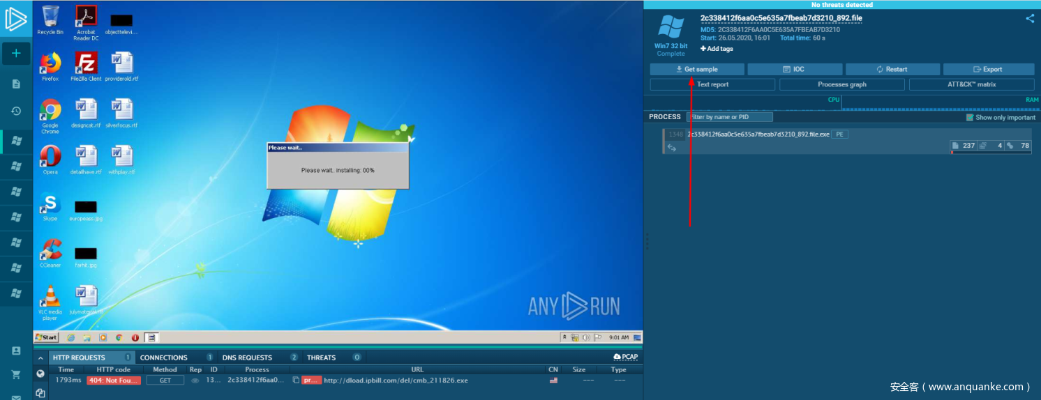 本节中所使用到的样本已经上传到了app.any.run