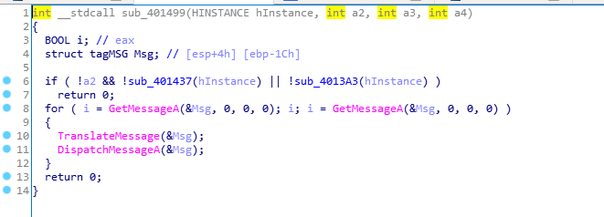 通过上面的分析我们可以知道,既然sub_401437是用于初始化窗体,那么返回0应该是初始化失败