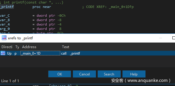 然后一层层的往上找,最后找到了_printf函数