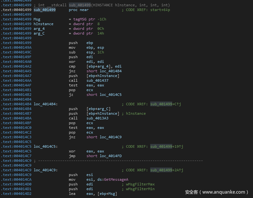 继续对sub_4013A3进行交叉引用,回到了sub_401499函数中