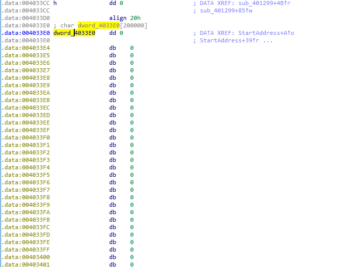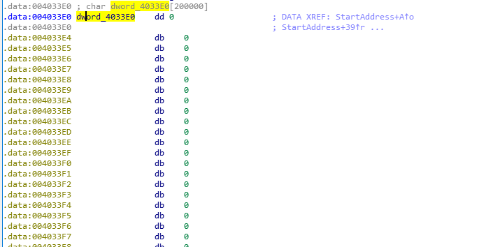 offset dword_4033E0,大小200000的char数组