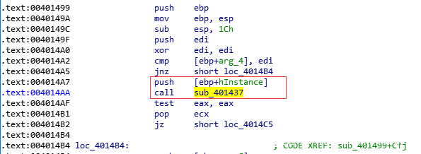 接着,程序push了另外一个参数,然后call进入到了sub_401437函数中: