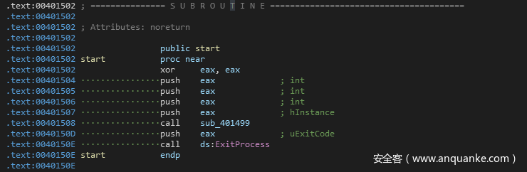 sub_401499函数调用完成之后,再通过ExitProcess函数结束进程。