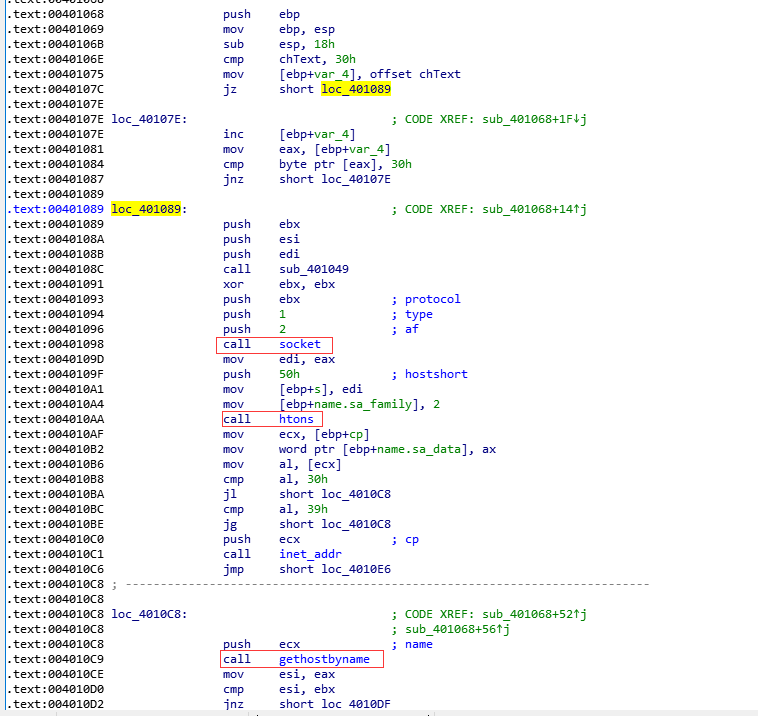 我们跟进到sub_401068函数验证一下,可以看到,的确是进行网络请求的一些函数。
