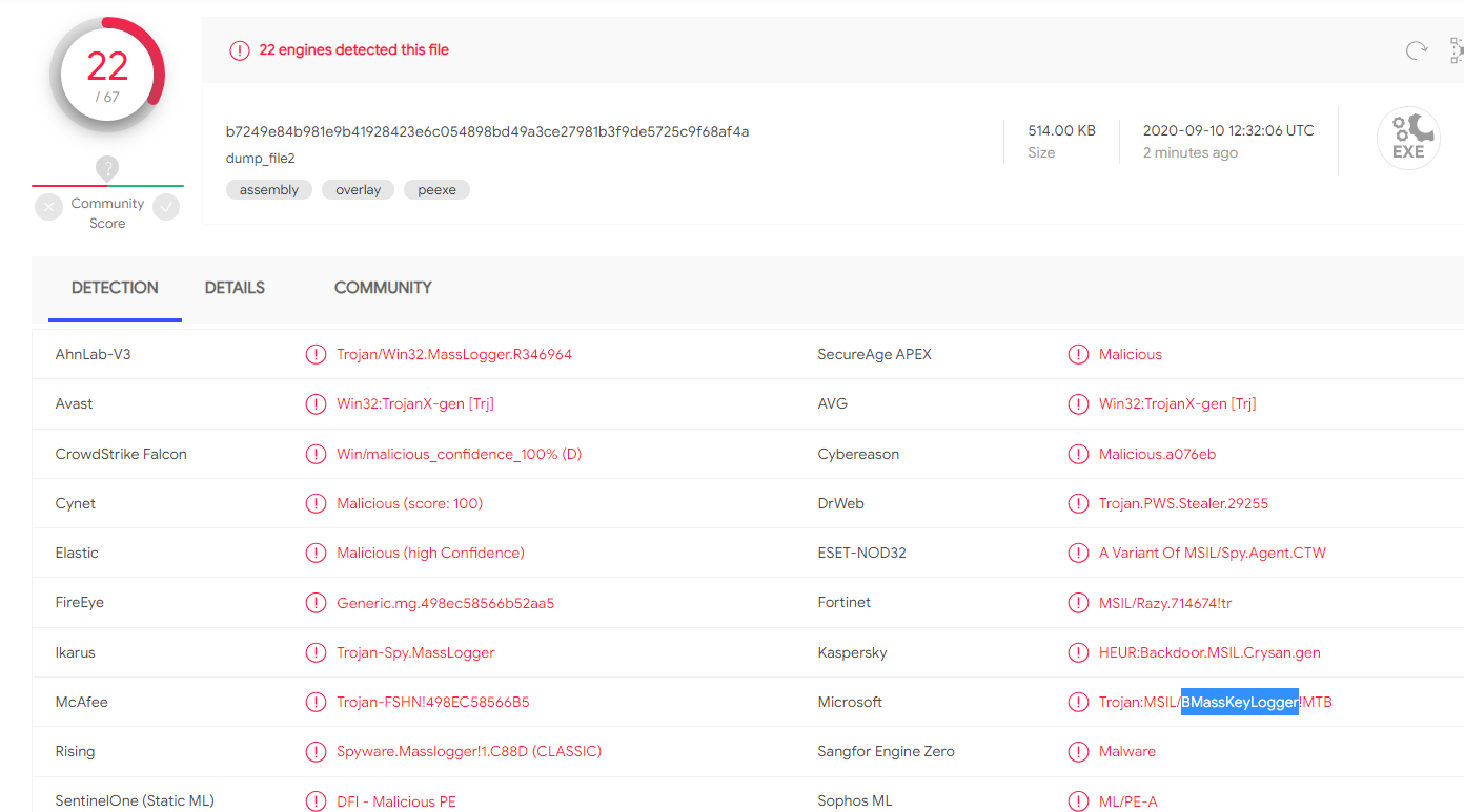 498EC58566B52AA5875497CADF513547目前无检出,样本上传之后发现这应该是一个名为Mass KeyLogger的新版本键盘监听器