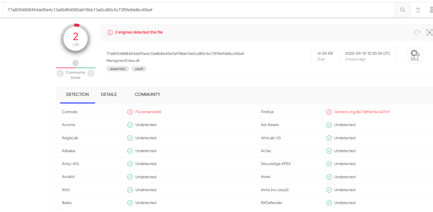 在VT上查了一下样本,惊奇的发现,现在居然只有一家厂商给出了明确的报毒:Downloader.WannaMine