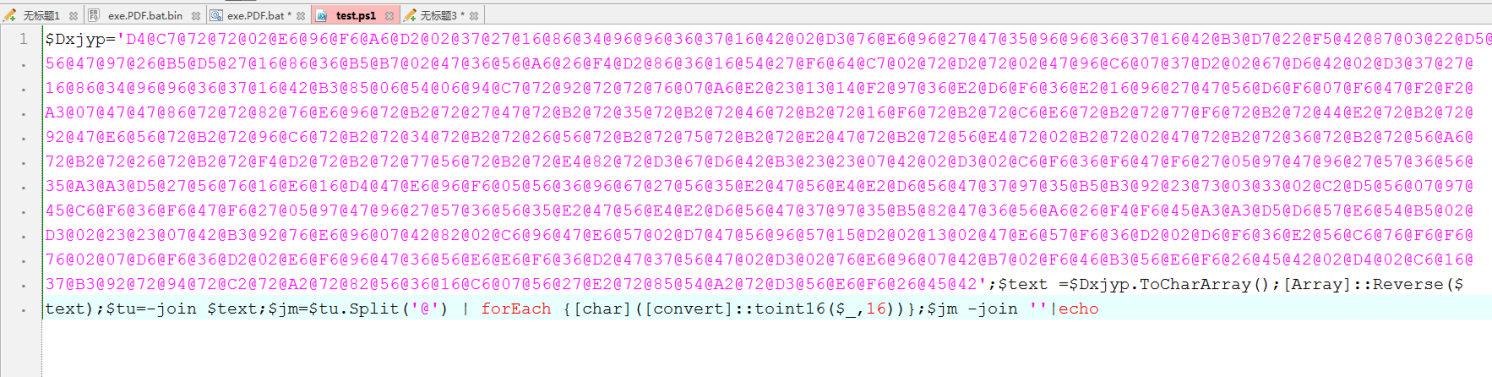 原始样本的确是bat的文件,编辑工具加载后内容如下: