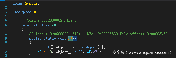 样本使用dnspy去混淆之后还是有比较好的可读性的,这里就大概看一下。